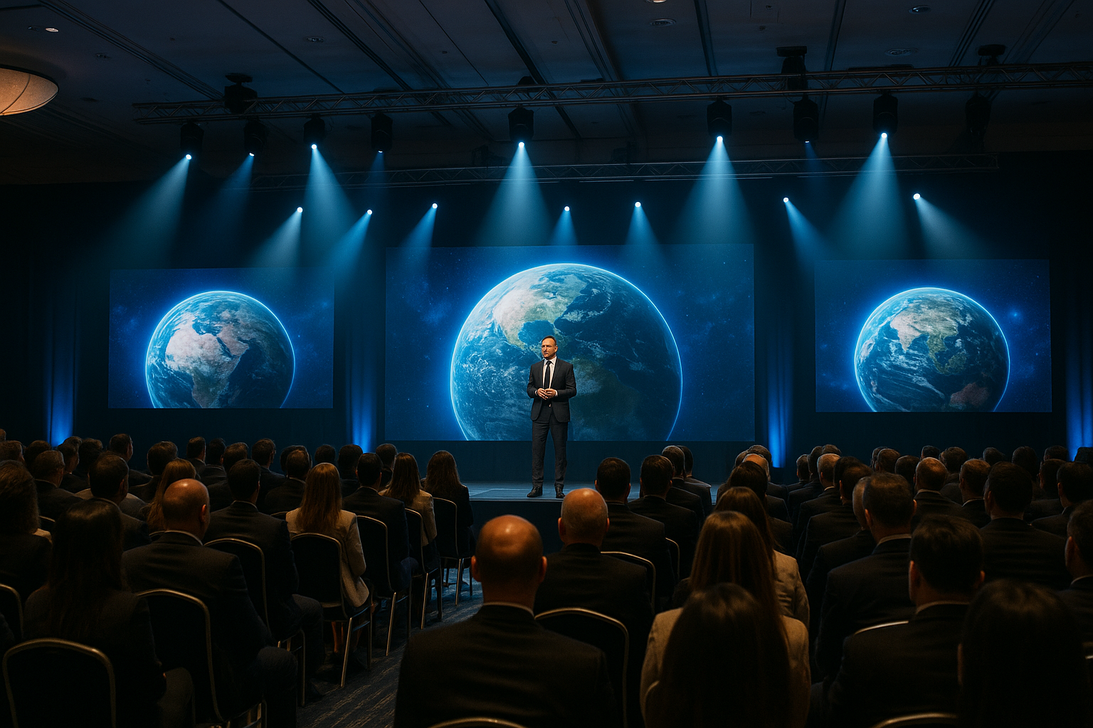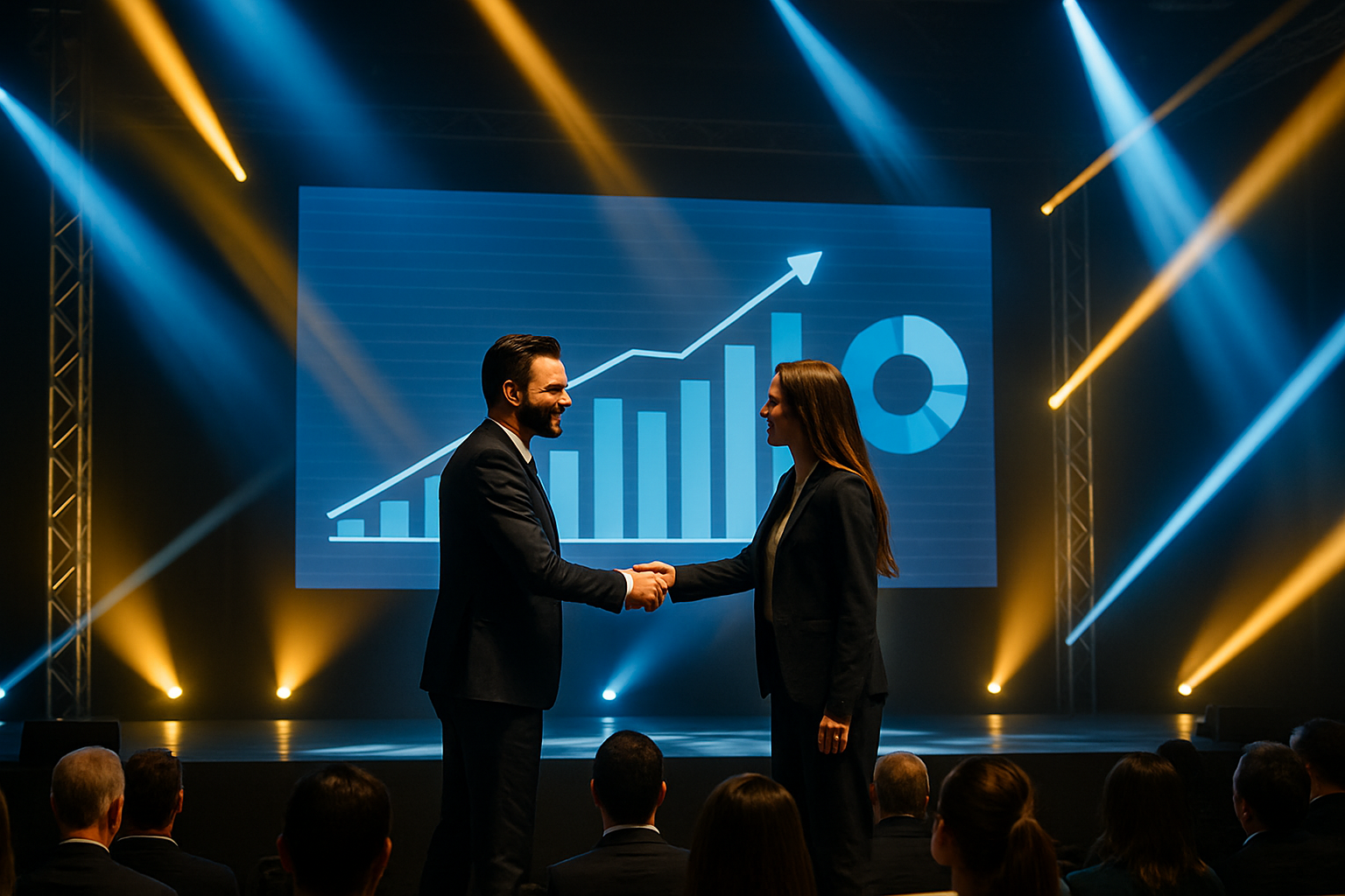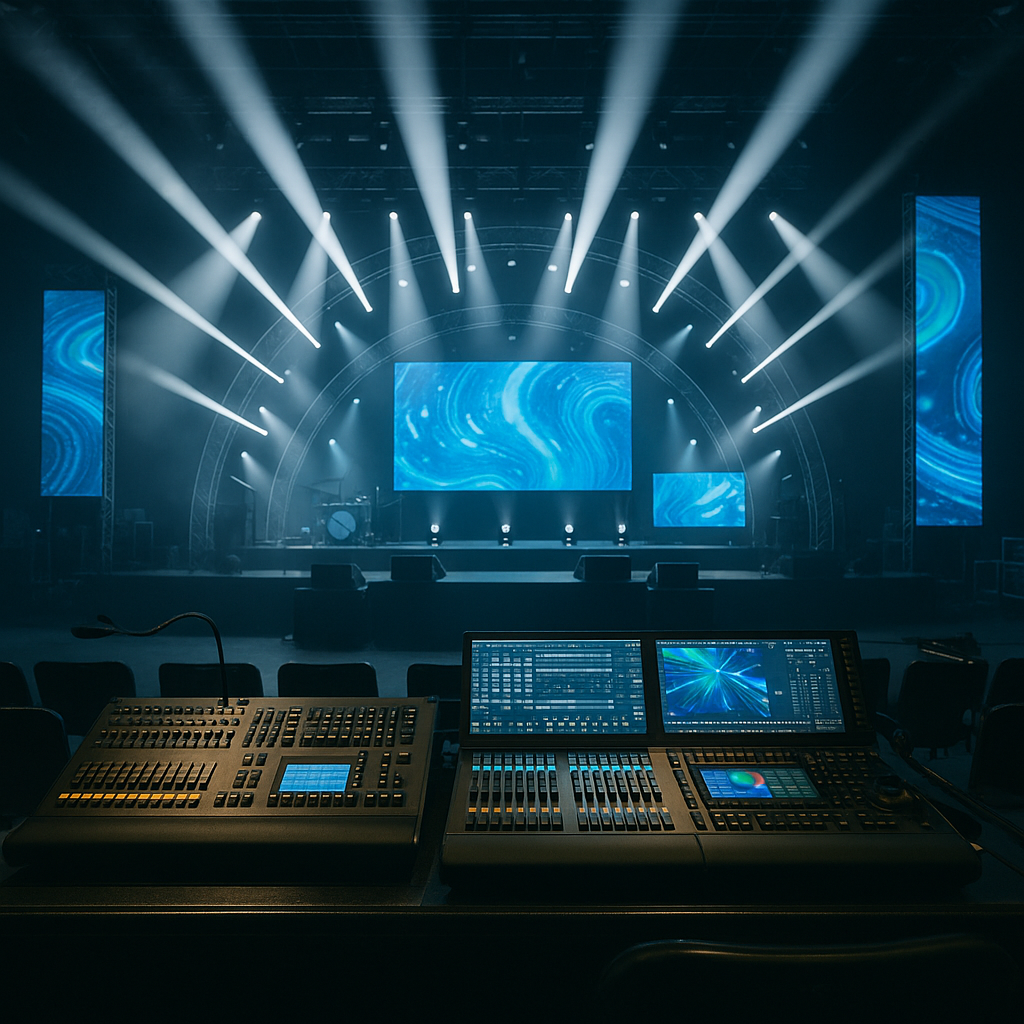 Rig programado por cue: looks elegantes, key light para ponentes y efectos de show